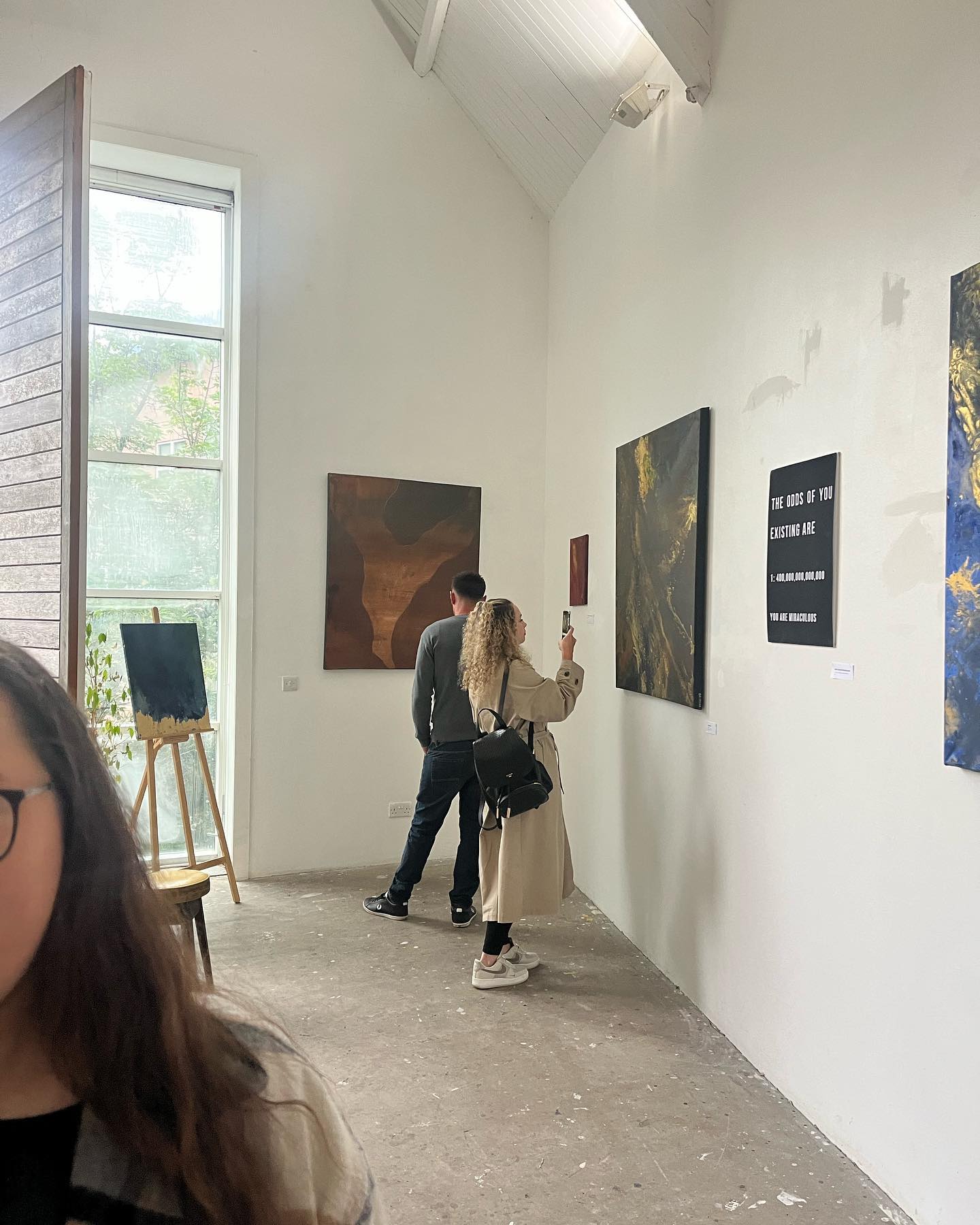 Many paintings in the exhibition reflect on our souls and creating them through abstract art, it touches on the concept of soul mates and how we have all been here before.