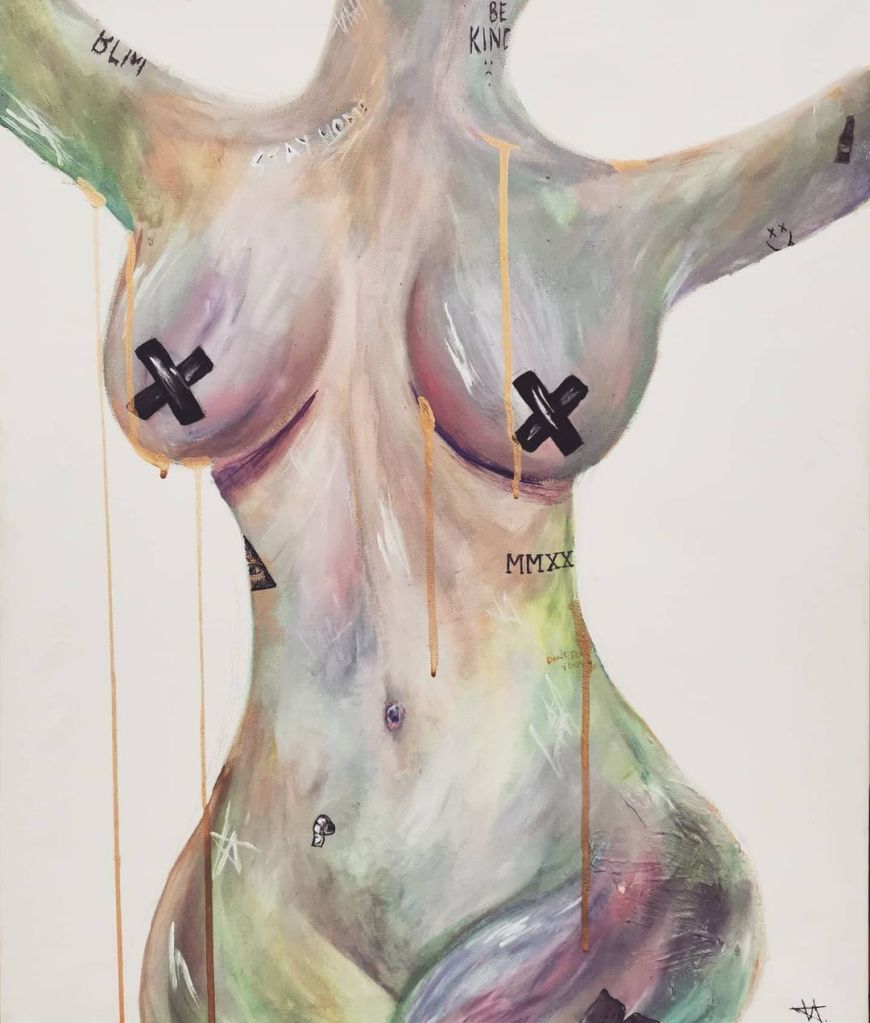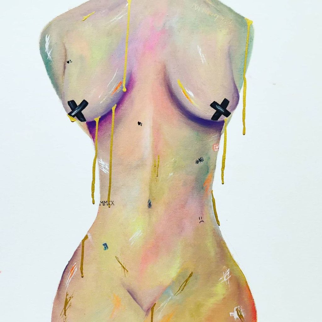 The pieces in the collection show nude women baring all, scarred and marked with the pressures of society, also focusing heavily on the events of 2020 and how that influenced our opinions and lifestyle.